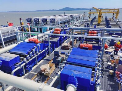 В проекте используется комбинированный процесс «обезвоживание с помощью фрезерного всасывающего земснаряда + вибрационного грохота + пластинчато-рамного фильтр-пресса». Система в основном состоит из модуля вибрационного грохота, модуля устройства сброса шлака, модуля распылительного устройства и модуля аварийного перелива шлама. Основным оборудованием является вибрационный грохот Kexun LS1850, производительностью до 1800 м³/ч, способный удалять мелкие частицы ила размером более 2 мм. Оставшийся шлам поступает в пластинчато-рамный фильтр-пресс для образования иловых корок, предназначенных для утилизации за пределами предприятия.